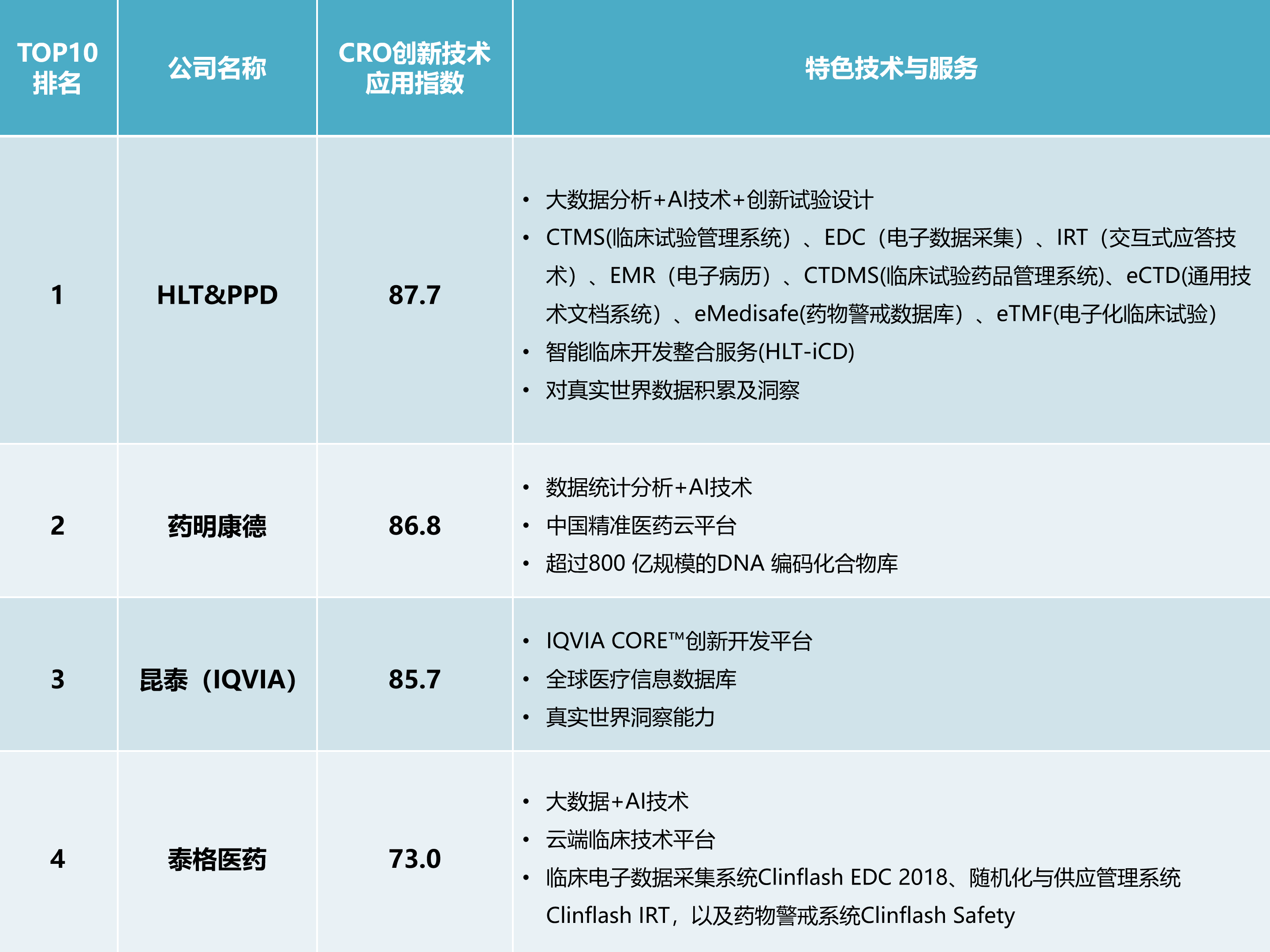 不竭优化改良临床试验设想、尝试核心选择和患者招募等。企业实现快速成长。做为保守CRO行业的巨头,全球CRO市场将维持目前12%摆布的增幅,成立了全球最大、最全的医疗消息数据库。通过取IMSHealth归并,此中,取吉里亚科学颁布发表合做成立专业的cGMP阐发测试核心,公司新扩展了药物晚期临床试验办事(临床Ⅰ期及BE试验)和药物鉴戒办事等。一般来说,此外,CFS模式取EFS模式连系的益处是,以及药物鉴戒系统ClinflashSafety。伴跟着全球药企研发成功率降低、研发周期耽误和研发费用上升,包罗Verify系统、RDCS系统、MillionData系统。TOP10企业立异型手艺人才占比平均值为15.6%;加速生物药发觉、开辟及出产过程。